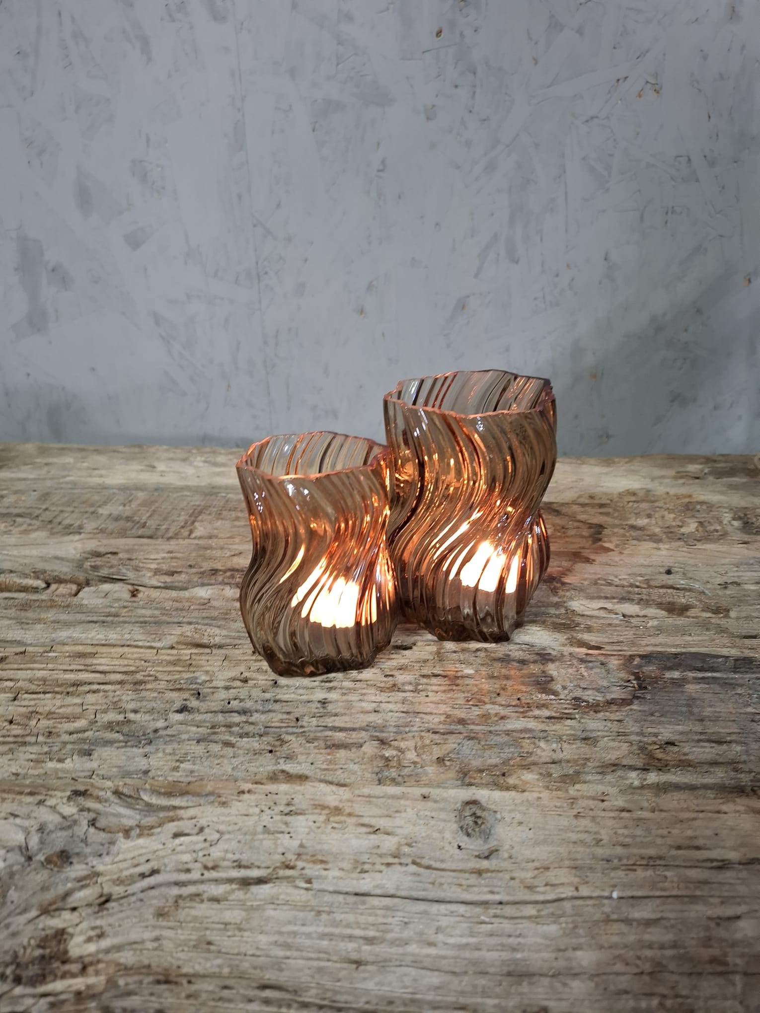 Deze glazen waxinelichthouder champagne groot is perfect voor subtiele maar stijlvolle accenten in huis. Het lichte glas met reliëf verspreidt een warm en sfeervol licht, ideaal voor op een bijzettafel, nachtkastje of in een open kast.