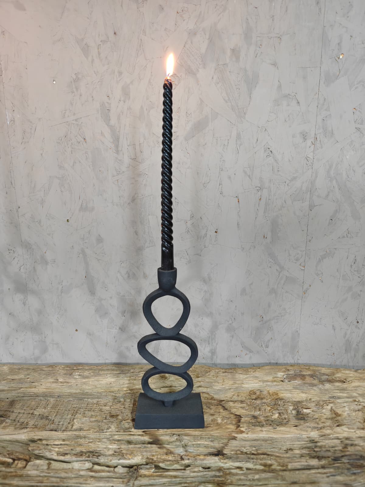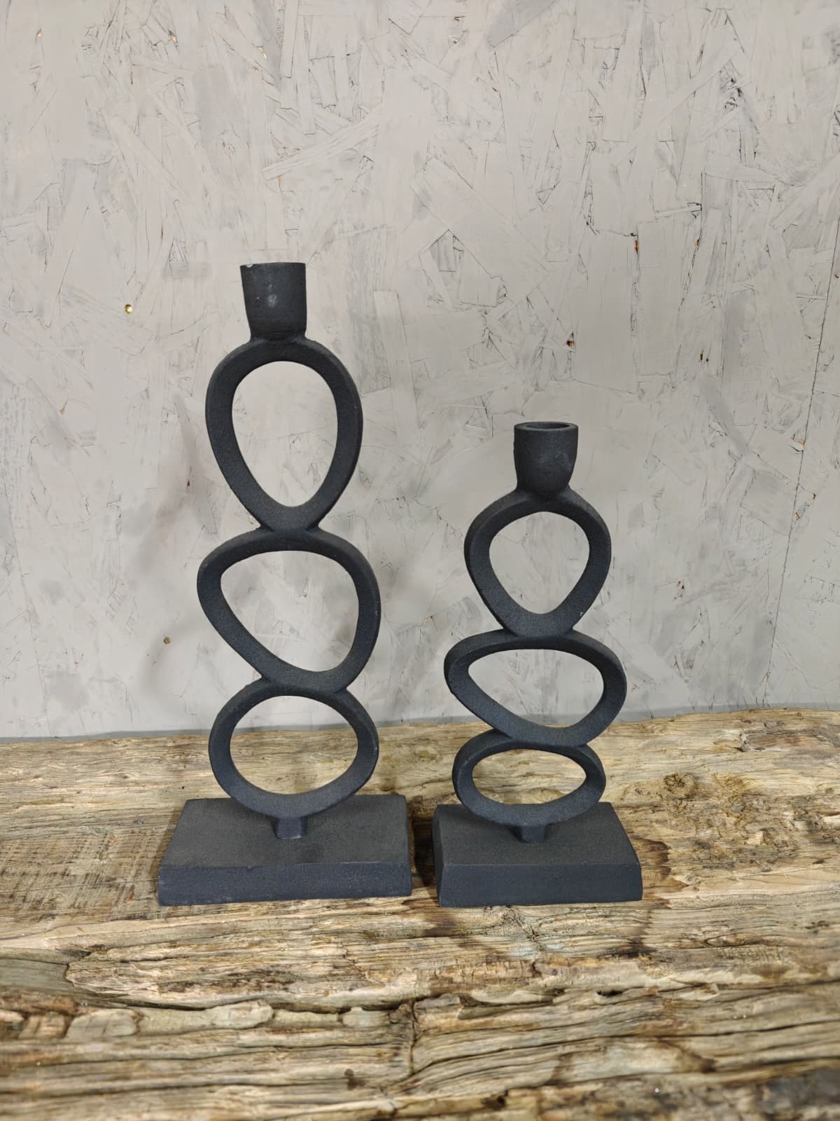 Stijlvolle kandelaar van steen in klein formaat. Met open ringen voor een unieke en moderne uitstraling.