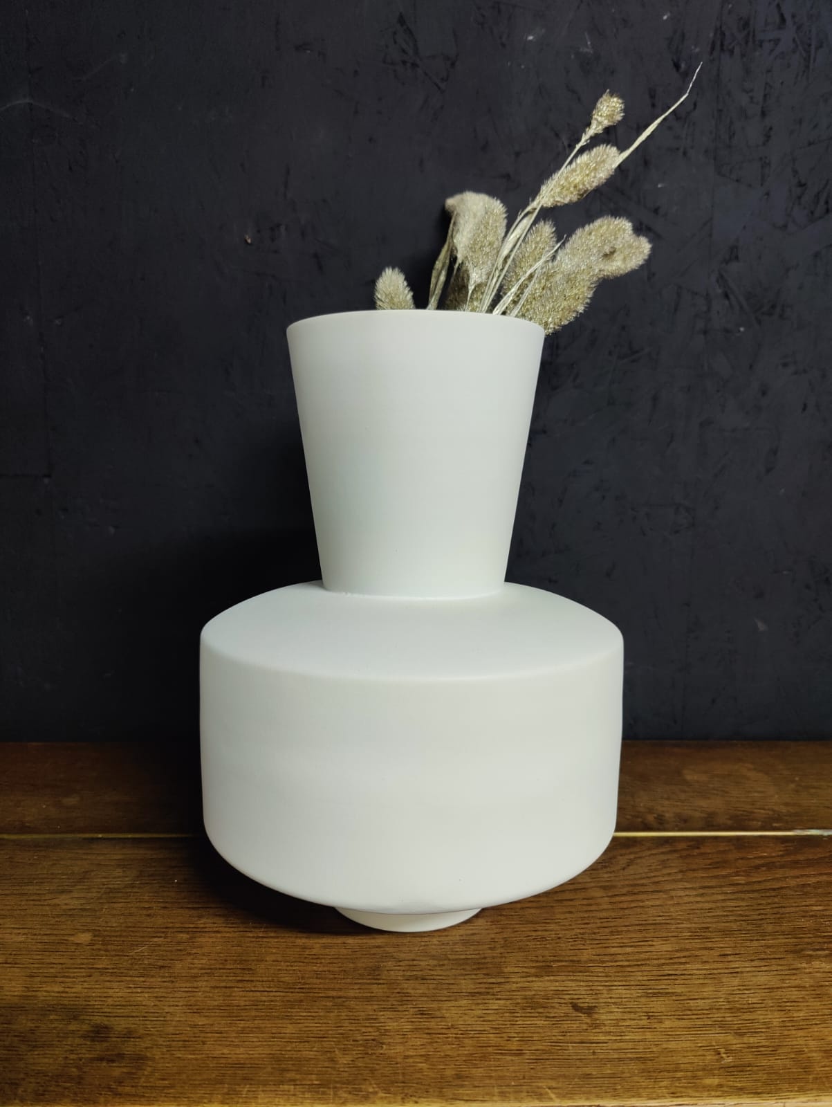 Gemaakt van hoogwaardig keramiek en afgewerkt met een zachte matte textuur, straalt deze vaas rust, elegantie en eenvoud uit.