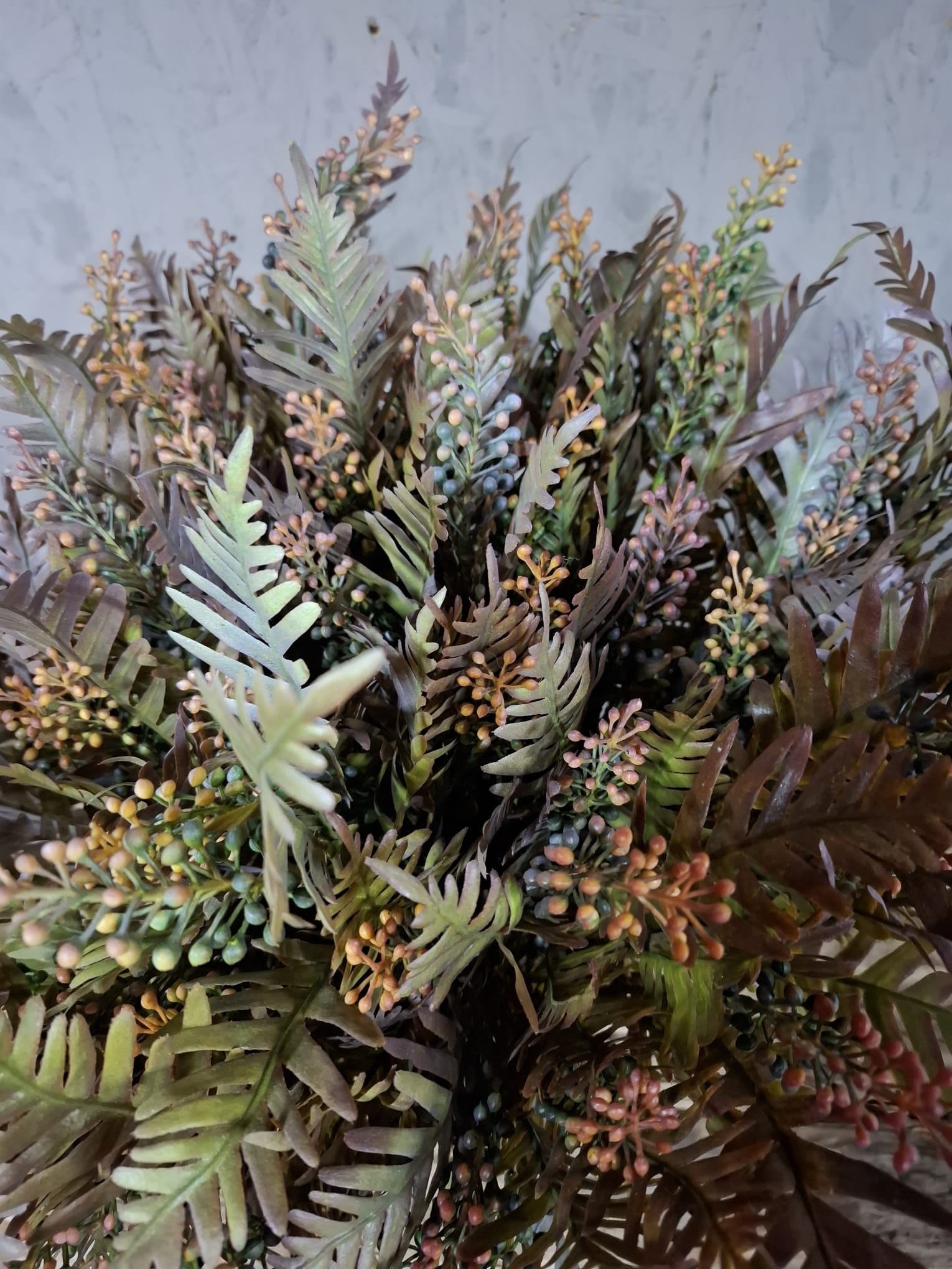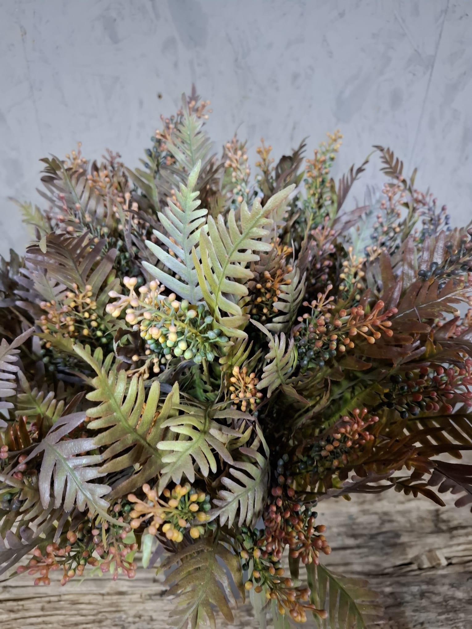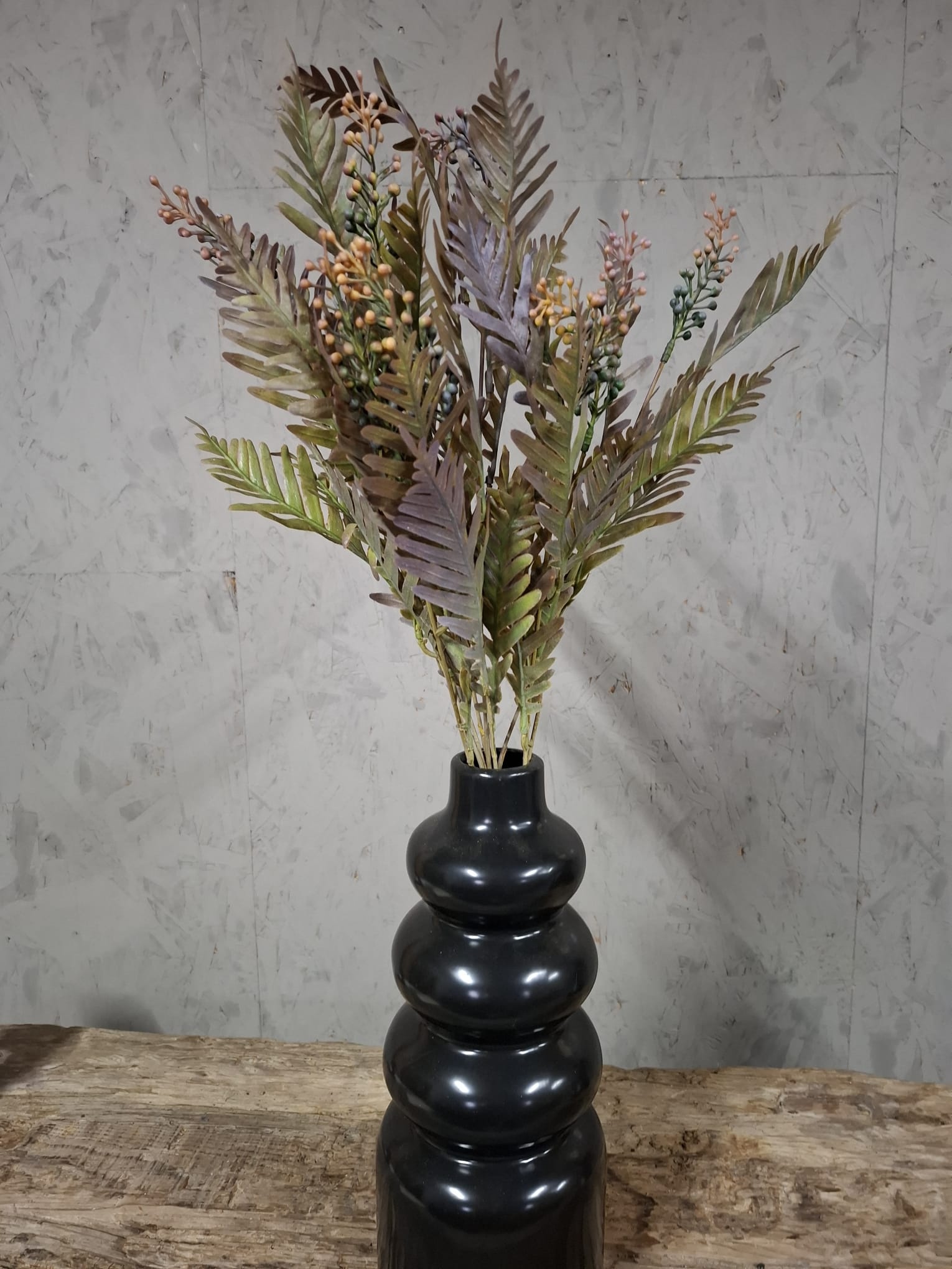 De Myrica Bush Deluxe Bronze 58cm – Brynxz is een prachtige kunsttak met een rijke mix van brons-, koper- en groentinten. De verfijnde bladeren en kleine bessen zorgen voor een natuurlijke en warme uitstraling die perfect past binnen een sfeervol of landelijk interieur.