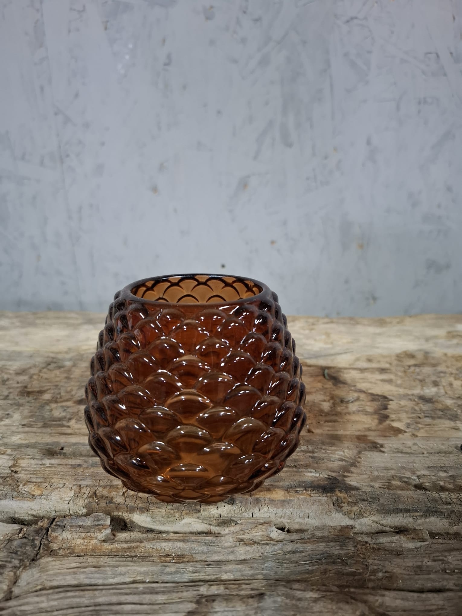 De Waxinelichthouder Cognac L heeft een warme bruine kleur. Door de structuur van het glas geeft deze waxinelichthouder prachtig licht.