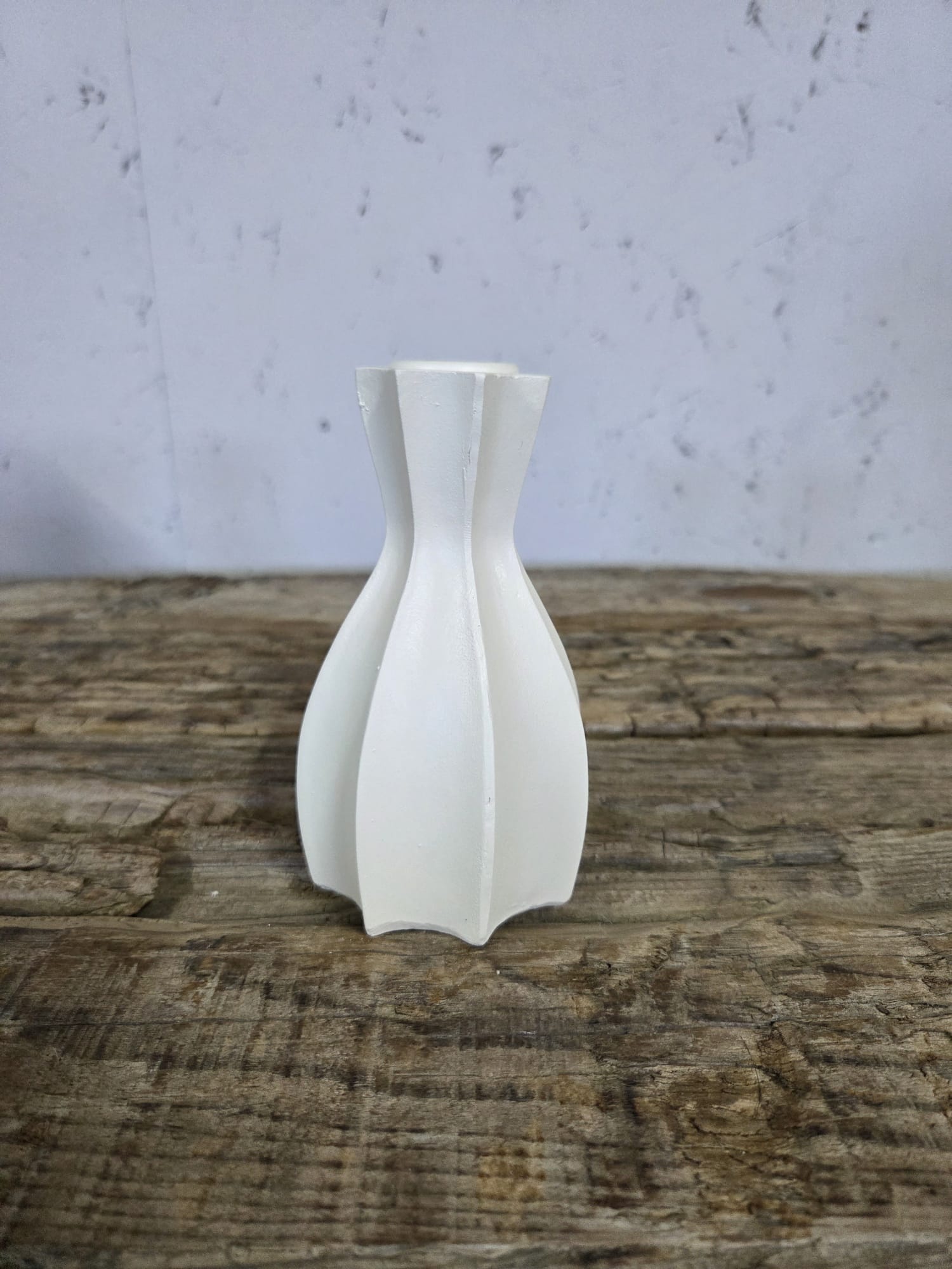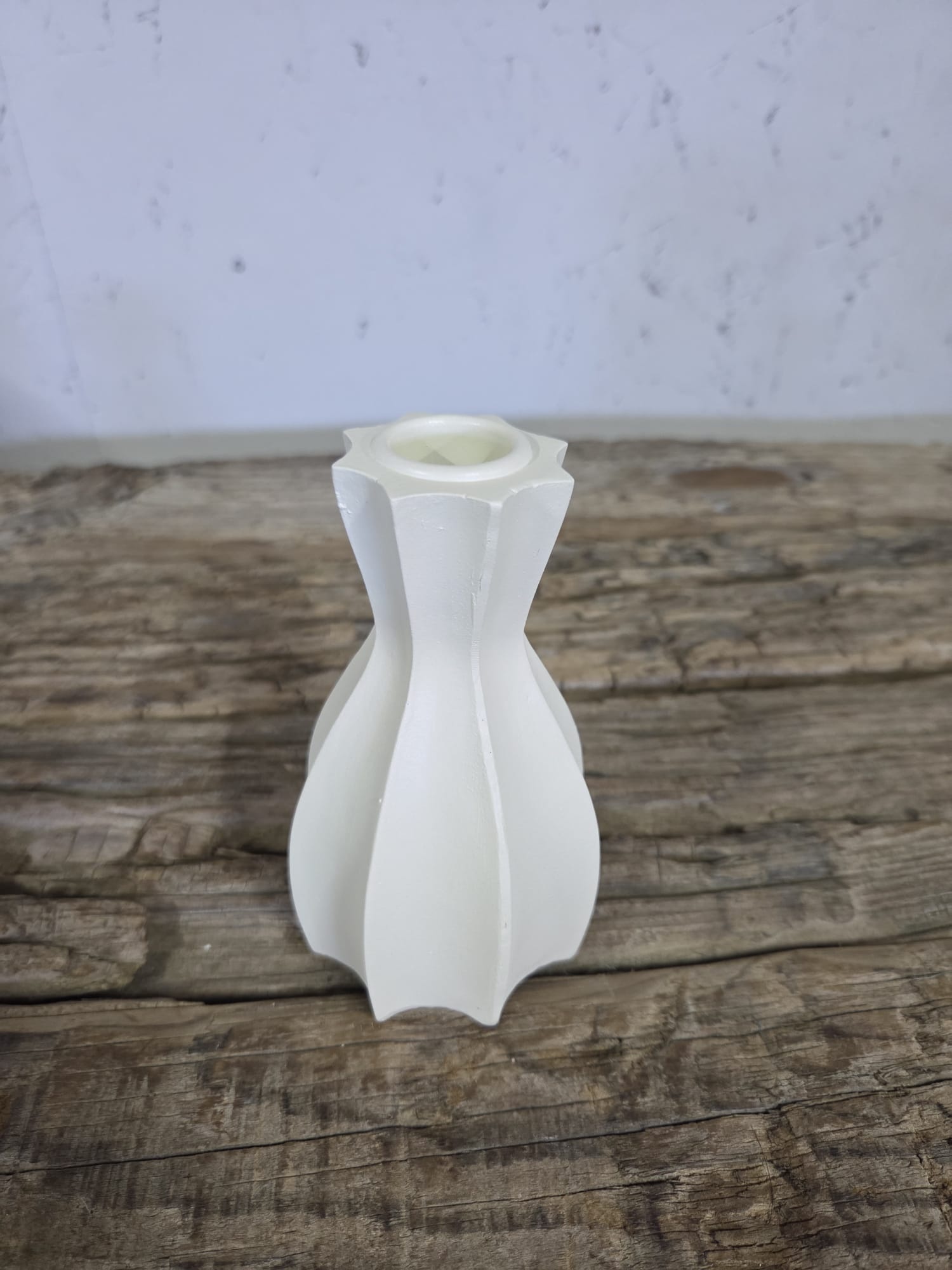 Deze hoge witte kandelaar heeft een slank en modern design met een elegante vormgeving. De subtiele lijnen en verfijnde afwerking zorgen voor een rustige, stijlvolle uitstraling die perfect past in een eigentijds interieur.