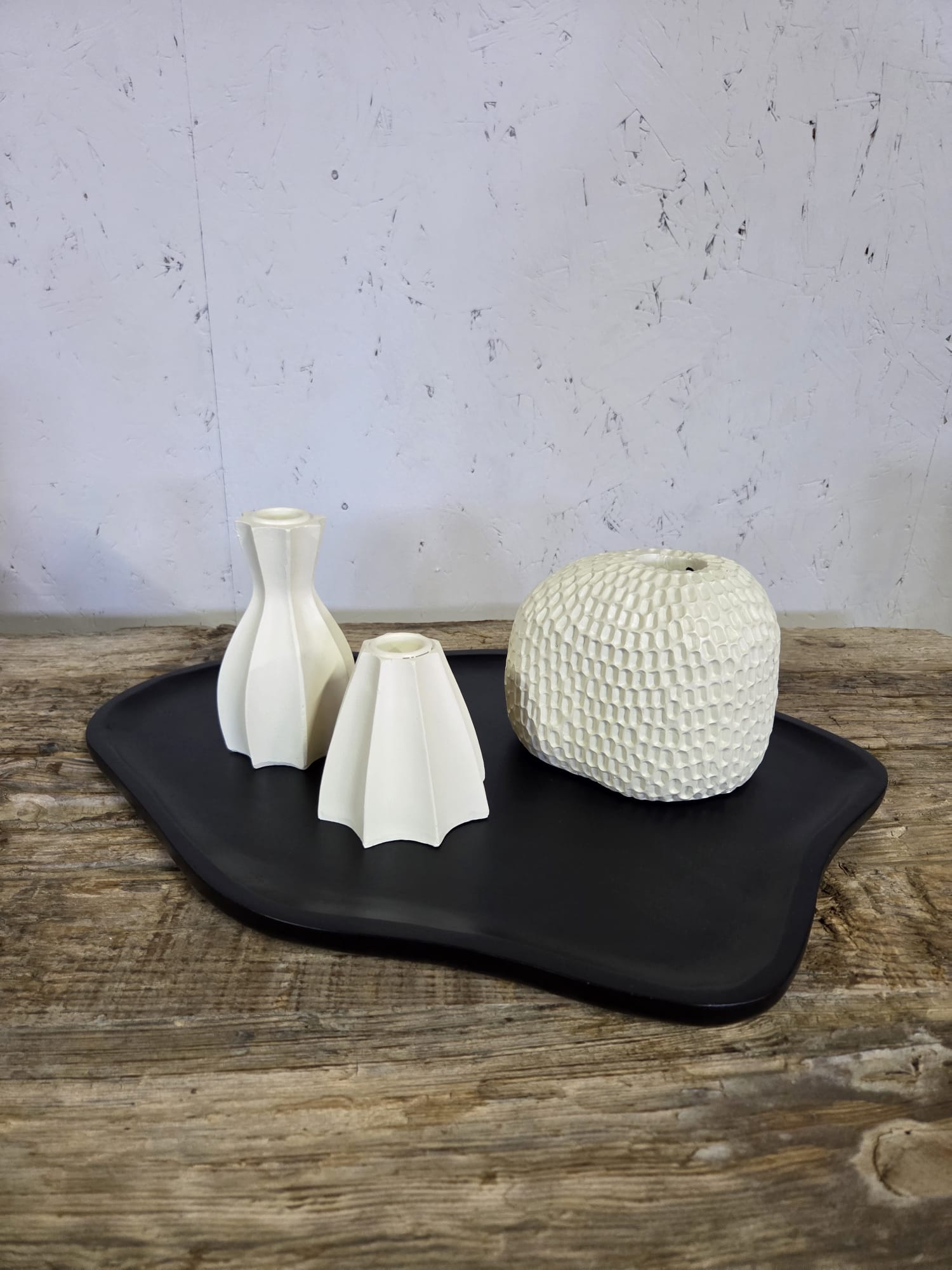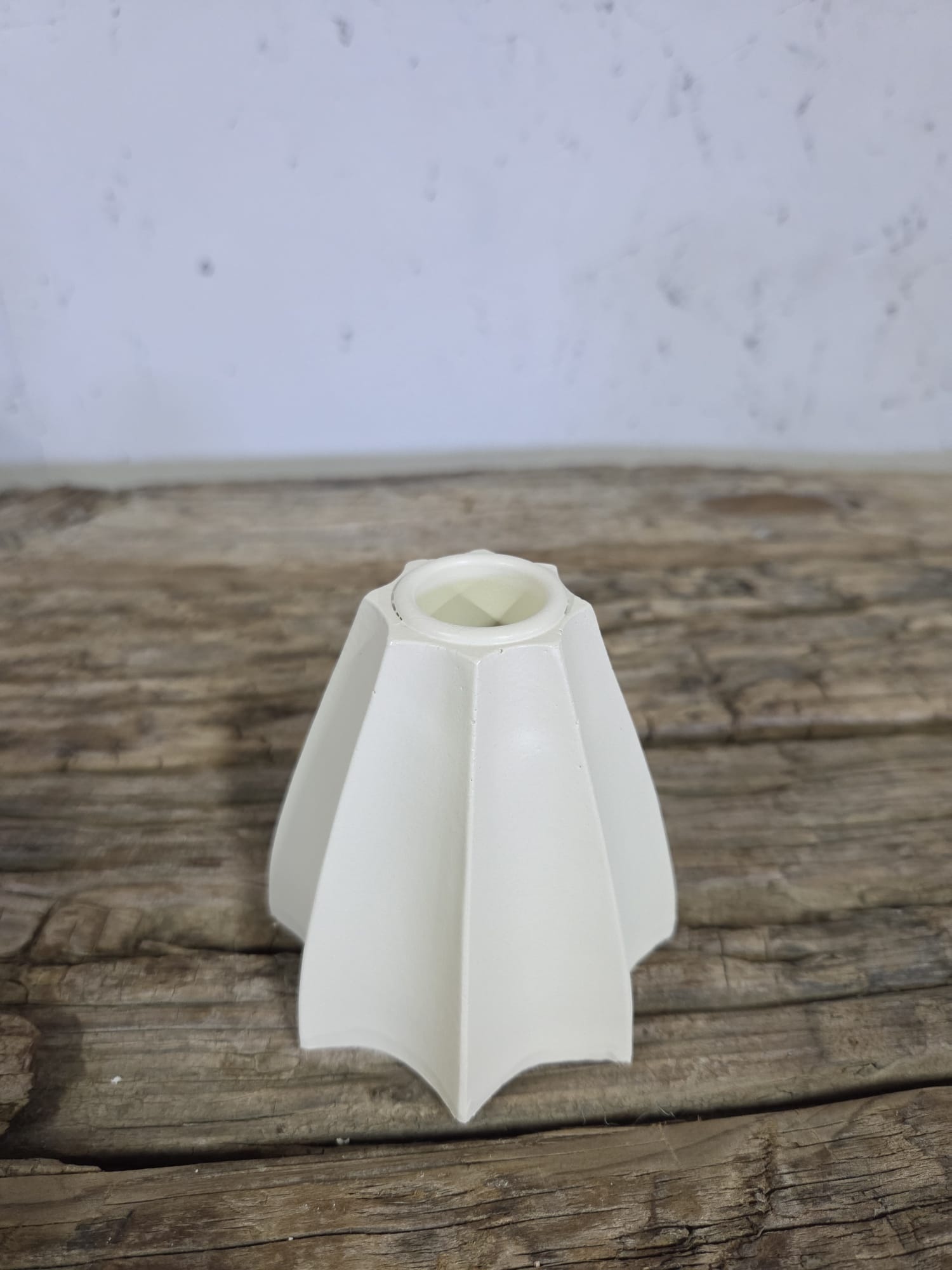 Deze lage witte kandelaar heeft een modern en strak design met subtiele lijnen en een speelse vorm. De combinatie van rechte vlakken en zachte rondingen geeft de kandelaar een eigentijdse uitstraling.