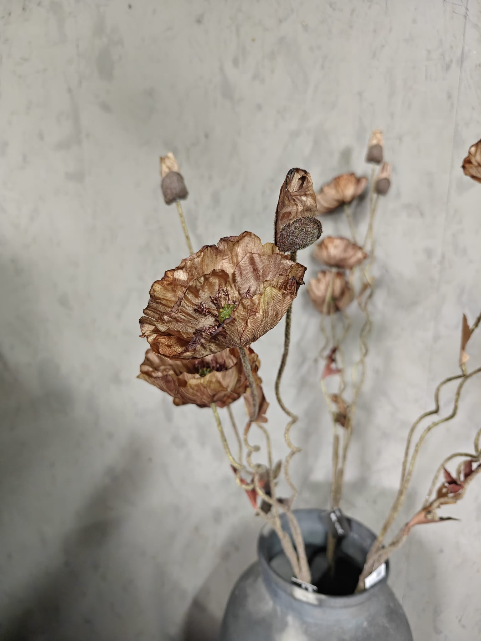 Voeg een natuurlijke, warme sfeer toe aan je interieur met deze stijlvolle zijden bloem Poppy Bundle Brown. De bundel bestaat uit meerdere sierlijke papaverstelen in aardse bruintinten, die samen een rustieke en decoratieve uitstraling geven.