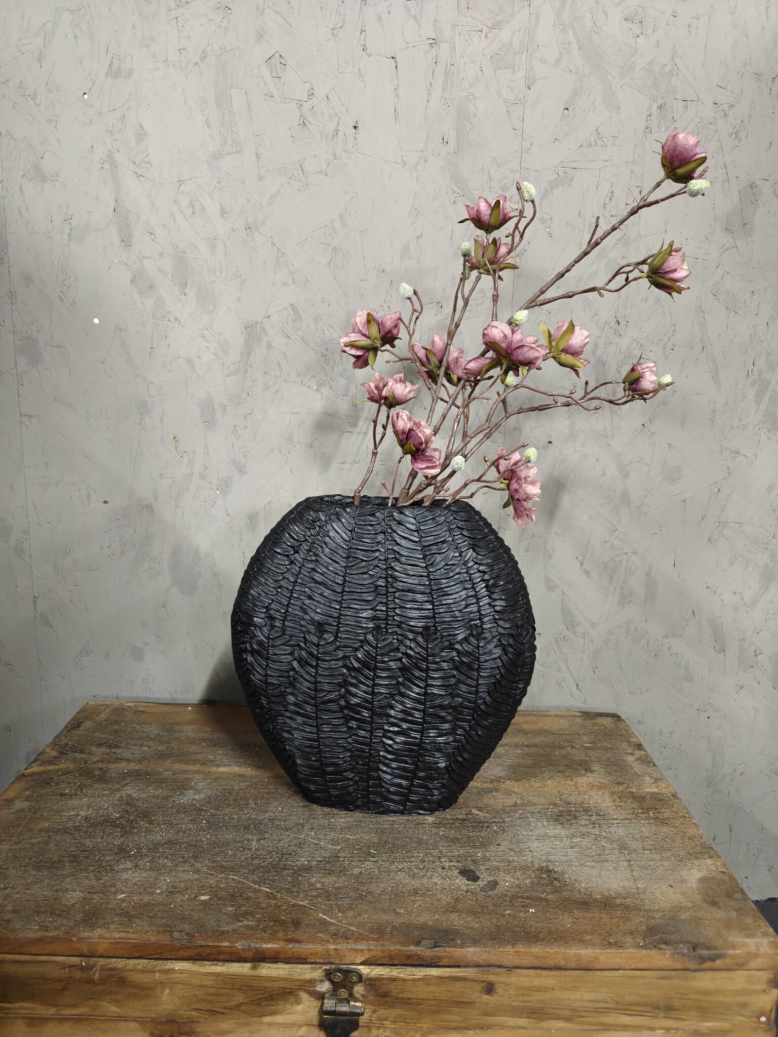 Inclusief moderne pot (kleur en materiaal: zwart / metaal)